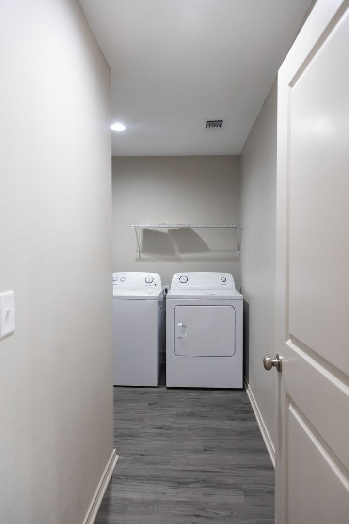 Beautiful laminate wood flooring, granite countertops, stainless steel appliances, garages, and washer/dryers included in every unit.